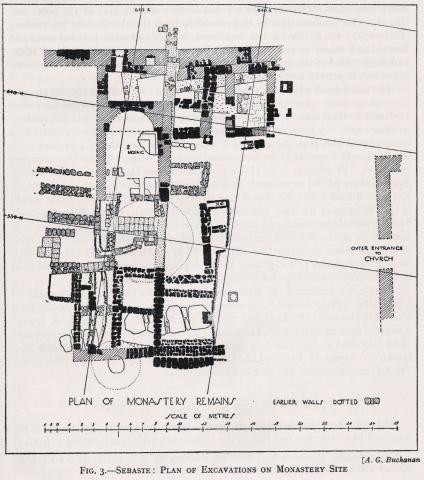 Tri-apsidal (?) basilical church. | Fifth or sixth centuries on basis of the style of construction and the form of lettering in the inscription. | Phase 1 | 5th-6th c. |